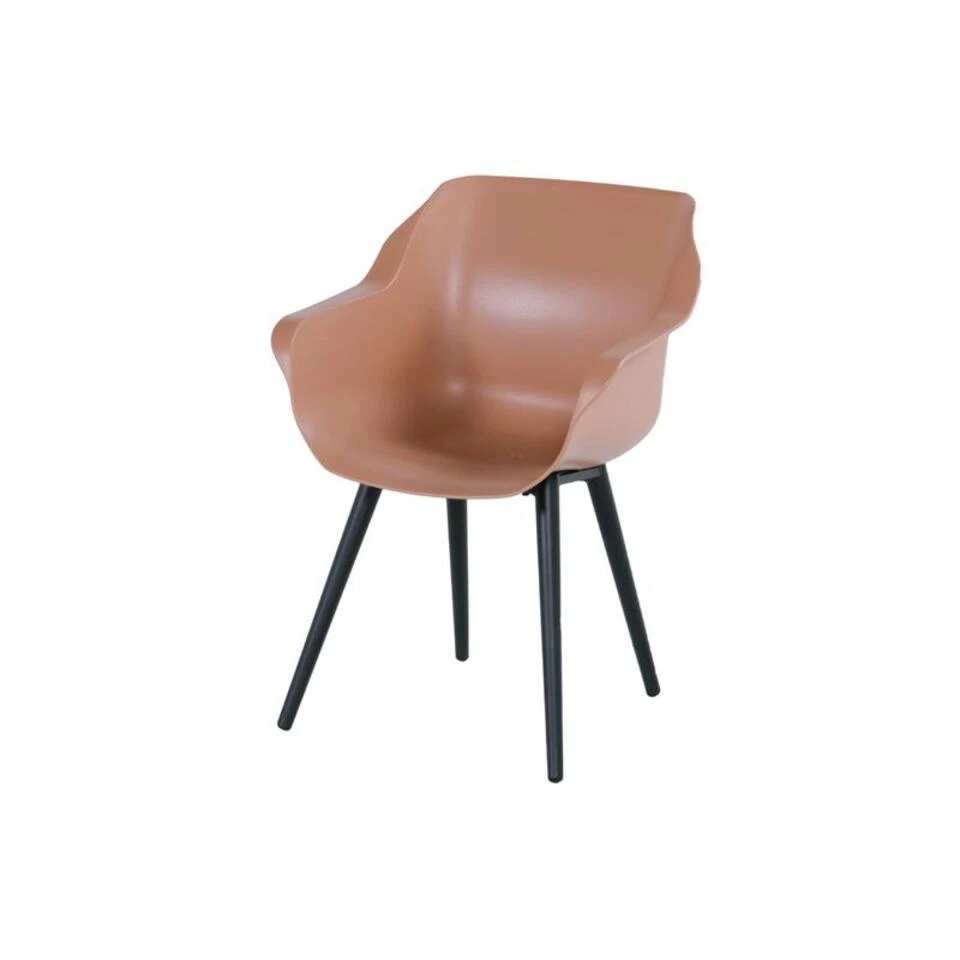 De kunststof kuip is voorgevormd, dit zorgt ervoor dat de stoel een ergonomisch zitcomfort biedt en daardoor dus erg lekker zit. Er is voor kunststof gekozen omdat het erg licht van gewicht is en onderhoudsvrij. Zo kan je echt onbezorgd genieten in eigen tuin. Het frame van de Hartman Sophie Studio stoel is gemaakt van aluminium. Voor dit materiaal is bewust gekozen omdat dit sterk en onderhoudsvriendelijk is! Het frame is zwart gecoated zodat het mooi aansluit bij de kunststof terracotta kuip. Een echte moderne eyecatcher voor jouw tuin die ook nog eens perfect zit!Â