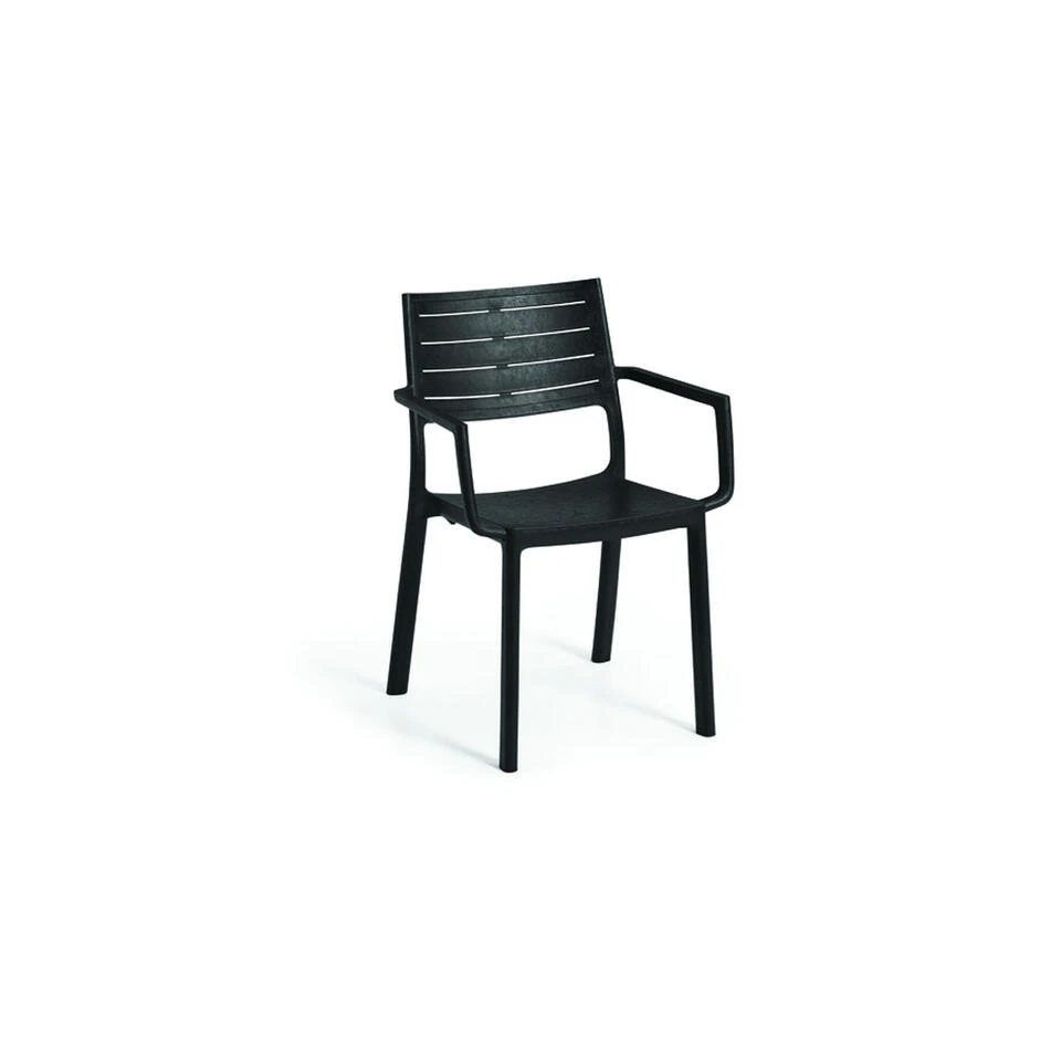 Ben je op zoek naar een praktische dining stoel van hoogwaardig kunststof? De Keter dining tuinstoel Metaline zwart is sierlijk en ste vig tegelijk. De Keter dining tuinstoel Metaline is gemaakt van hoogwaardig kunststof en is zwart van kleur. Deze tuinstoel behoort tot de Cast Iron-serie en heeft een gietijzer look. Kunststof is echter veel onderhoudsvriendelijker. Deze stoel gaat jarenlang mee. Afmeting tuinstoel: 53,3 x 60 x H81,3 cm.