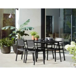 Suns Tutti Stapelbare Tuinstoel – Antraciet Met Teak Armleuning