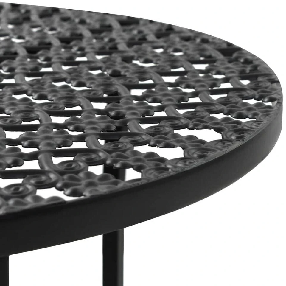 Deze metalen bistrotafel is versierd met prachtige details, die de tafel een antieke stijl geven en hem een blikvanger in elke kamer maken. Hij is ontworpen met een bodemmand voor extra opbergruimte. Het product is eenvoudig te monteren.
